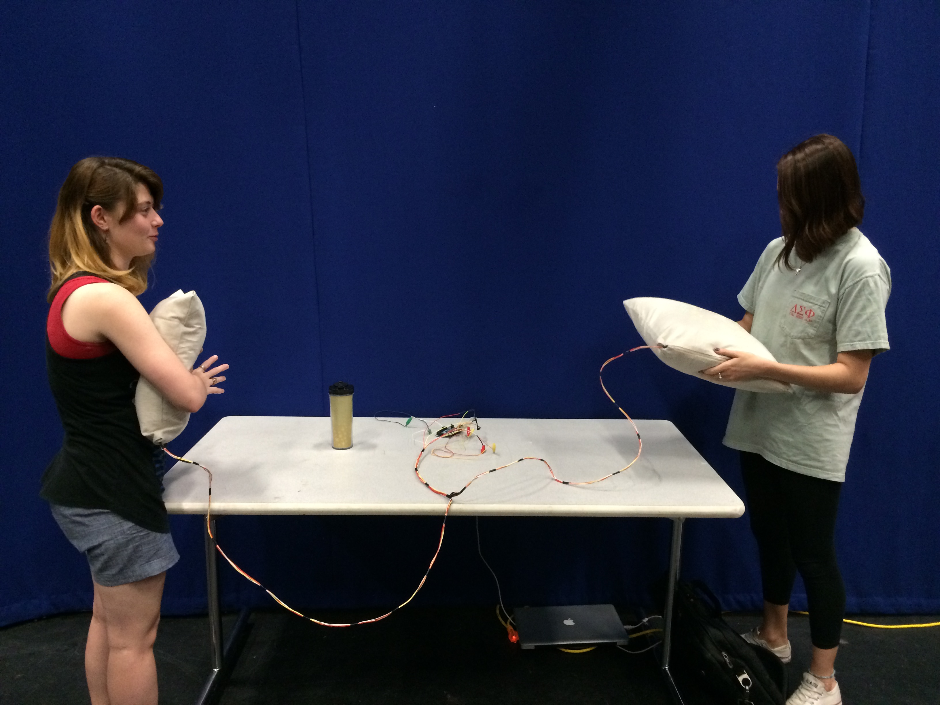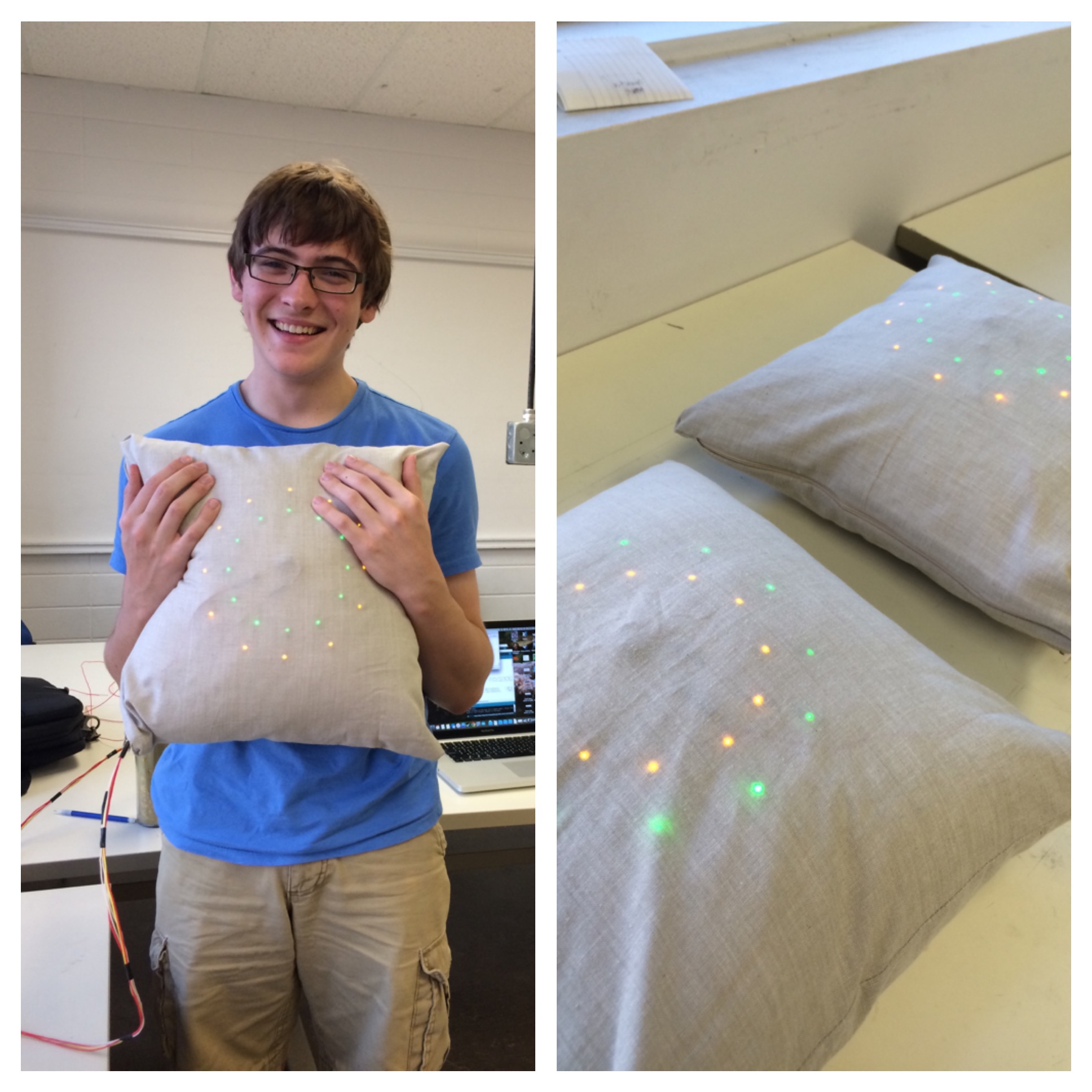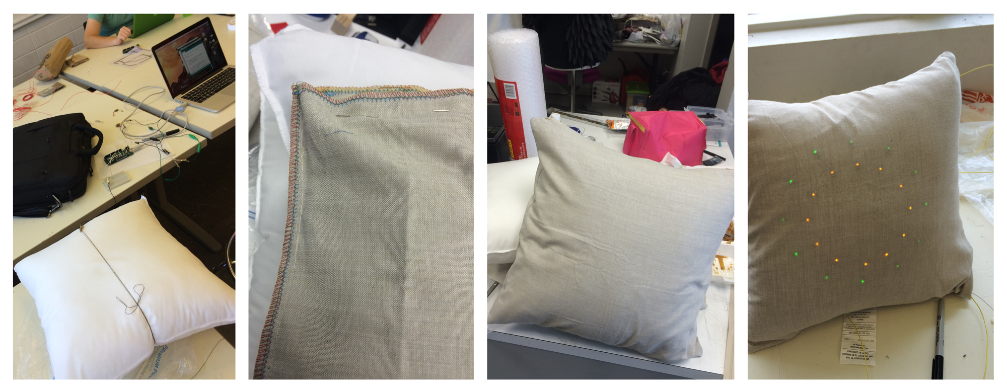 The media below covers a lot of the fabrication process from testing out the capacity sensor to the making of the pillow case and a video showing a bit of the hardware underneath the pillow to achieve lights and vibrations!